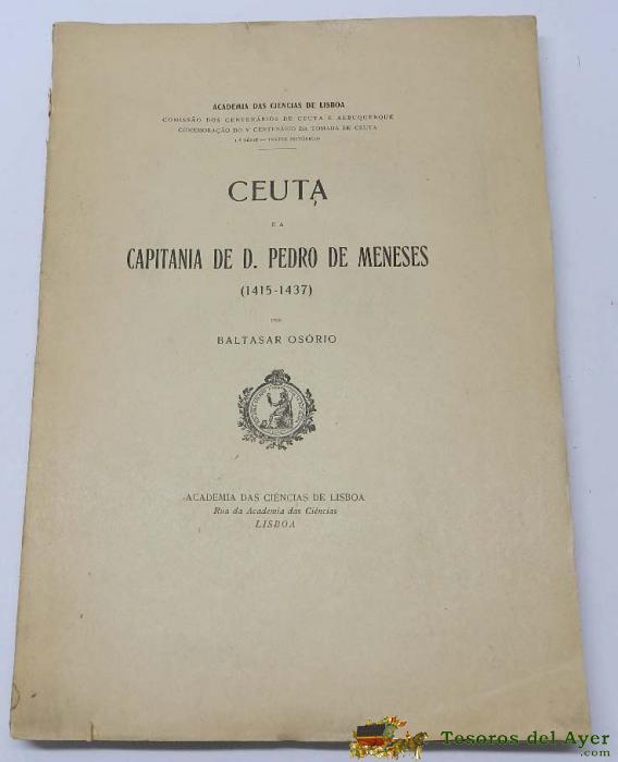 LIBRO CEUTA E A CAPITANIA DE D. PEDRO DE MENESES (1415-1437), POR OSÓRIO (BALTASAR), 1ª SéRIE TEXTOS HISTóRICOS. COMEMORAçãO DO V CENTENáRIO DA TOMADA DE CEUTA. COMISSãO DOS CENTENáRIOS DE CEUTA E ALBUQUERQUE. ACADEMIA DAS CIêNCIAS DE LISBOA. IMPRENSA DA