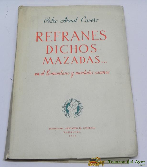 LIBRO REFRANES, DICHOS, MAZADAS...EN EL SOMONTANO Y MONTAÑA OSCENSE. PEDRO ARNAL CAVERO: INSTITUCIóN FERNANDO EL CATóLICO. CSIF. DIPUTACIóN PROVINCIAL DE ZARAGOZA. AÑO 1953. RúSTICA EDITORIAL. TIENE 323 PáG. MIDE 25 X 18 CMS.