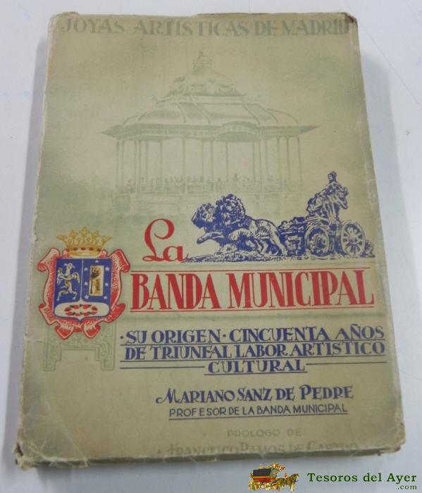 LIBRO DE LA BANDA MUNICIPAL, POR SANZ DE PEDRE, MARIANO: SU ORIGEN. CINCUENTA AñOS DE TRIUNFAL LABOR ARTíSTICO-CULTURAL. DEDICATORIA AUTóGRAFA DEL AUTOR, MADRID, IMP. JOSé LUIS COSANO, 1958. TIENE 154 PP. MIDE 22 X 16 CM. ALGUNAS IMáGENES EN BLANCO Y NEGR