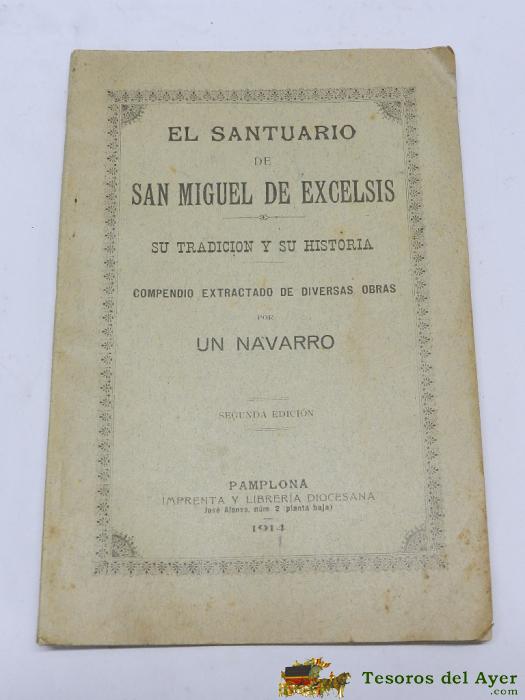 LIBRO EL SANTUARIO DE SAN MIGUEL DE EXCELSIS, UN NAVARRO, SU TRADICIóN Y SU HISTORIA. COMPENDIO EXTRACTADO DE DIVERSAS OBRAS 1914 - IMPRENTA DIOCESANA-PAMPLONA- EDITADO POR EL PATRONATO DEL SANTUARIO DE SAN MIGUEL DE EXCELSIS - TIENE 64 PAG.- RELIGIóN-HIS