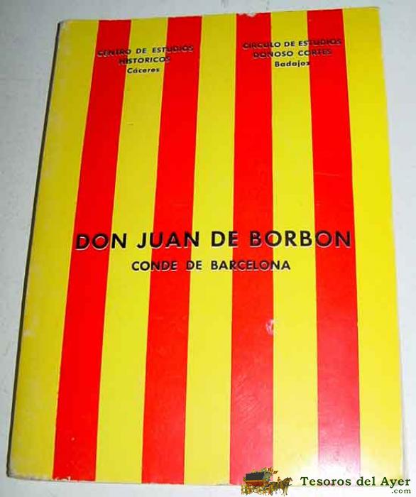 DON JUAN DE BORBóN. CONDE DE BARCELONA - CENTRO DE ESTUDIOS HISTÓRICOS. CÁCERES / CÍRCULO DE ESTUDIOS DONOSO CORTÉS. BDAJOZ PRENSA ESPAñOLA. 1967. MADRID. 17 CM. ILUSTRACIONES FOTOGRáFICAS.69 PP