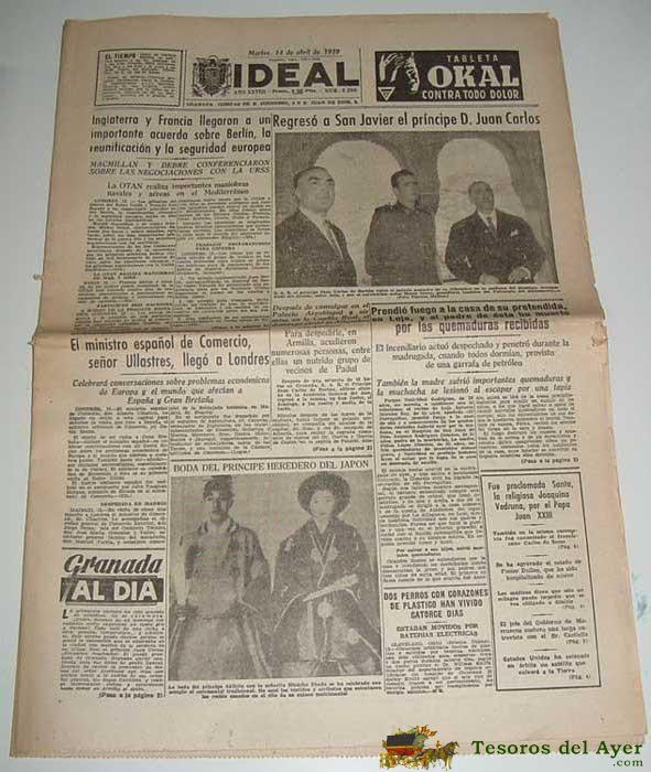 ANTIGUO PERIODICO IDEAL DEL 14 DE ABRIL DE 1959 - REGRESO A SAN JAVIER DEL PRINCIPE S. JUAN CARLOS - INCLUYE EL SUPLEMENTO DEPORTIVO - 23 PAG - MIDE 47,5 X 33 CMS - MUY ILUSTRADA CON ANUNCIOS PUBLICITARIOS DE VESPA ENTRE OTROS - FUTBOL.