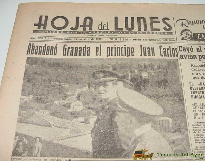 ANTIGUO PERIODICO HOJA DEL LUNES - EDITADA POR LA ASOCIACION DE LA PRENSA - GRANADA 13 DE ABRIL DE 1959 - VISITA DEL PRINCIPE JUAN CARLOS - MUY ILUSTRADA - CON ANUNCIOS PUBLICITARIOS - MIDE 47 X 33 CMS - 11 PAG.