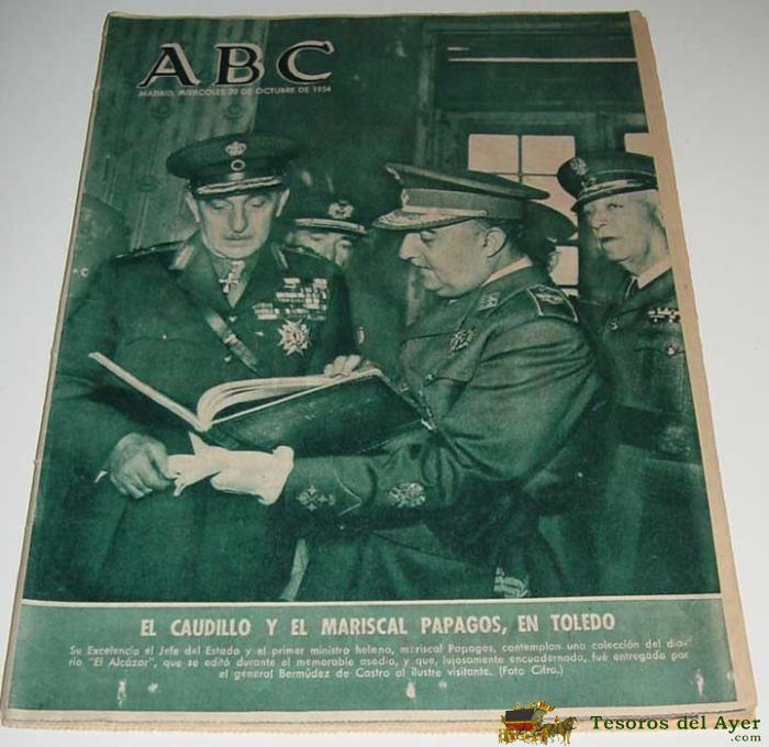 ANTIGUO PERIODICO ABC DEL 20 DE OCTUBRE DE 1954 - EL CAUDILLO Y EL MARISCAL PAPAGOS EN TOLEDO - 88 PAG - MUY ILUSTRADO - CON ANUNCIOS PUBLICITARIOS.