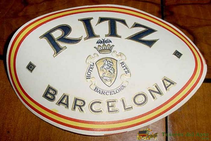 ANTIGUA ETIQUETA PARA MALETA CON PUBLICIDAD DEL HOTEL RITZ - BARCELONA - TAMAÑO POSTAL APROXIMADAMENTE.