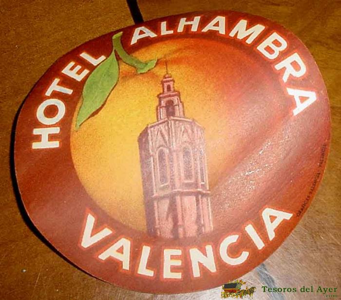ANTIGUA ETIQUETA PARA MALETA CON PUBLICIDAD DEL HOTEL ALHAMBRA - VALENCIA - TAMAÑO POSTAL APROXIMADAMENTE.