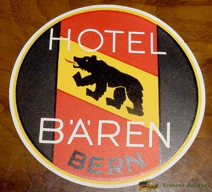 ANTIGUA ETIQUETA PARA MALETA CON PUBLICIDAD DEL HOTEL BAREN - BERN - TAMAÑO POSTAL APROXIMADAMENTE.