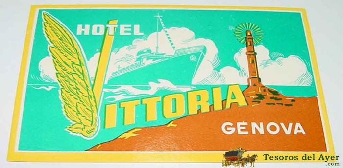 ANTIGUA ETIQUETA PARA MALETA - CON PUBLICIDAD DE HOTEL VITORIA - GENOVA - TAMAÑO LIGERAMENTE INFERIOR AL DE UNA POSTAL.