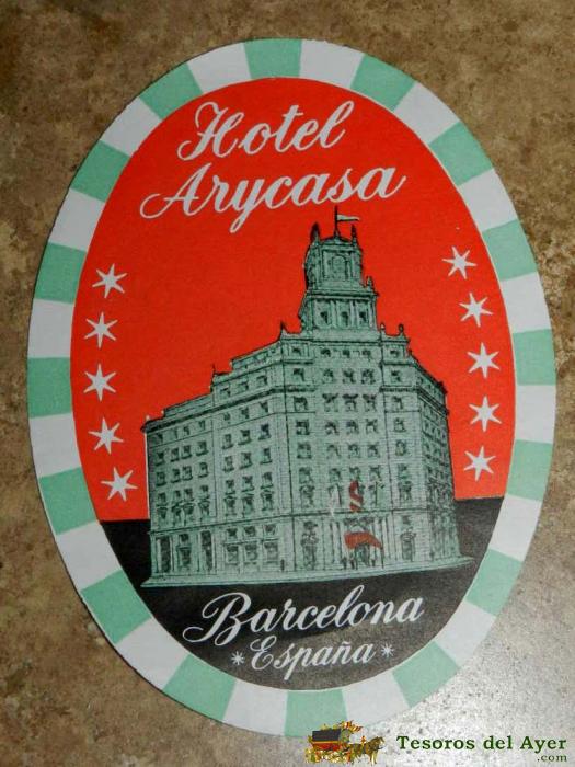 ANTIGUA ETIQUETA DE MALETA - ANTIQUE LUGGAGE BAGAGE LABEL - ANCIEN ETIQUETTE LA VALISE - HOTEL ARYCASA, BARCELONA - TAL COMO SE VE EN LA FOTO