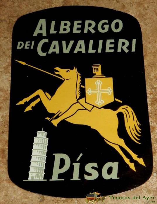 ANTIGUA ETIQUETA DE MALETA - ANTIQUE LUGGAGE BAGAGE LABEL - ANCIEN ETIQUETTE LA VALISE - ALBERGO DEI CAVALIERI - TAL COMO SE VE EN LA FOTO