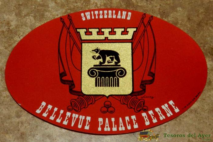 ANTIGUA ETIQUETA DE MALETA - ANTIQUE LUGGAGE BAGAGE LABEL - ANCIEN ETIQUETTE LA VALISE - BELLEVUE PALACE BERNE - TAL COMO SE VE EN LA FOTO