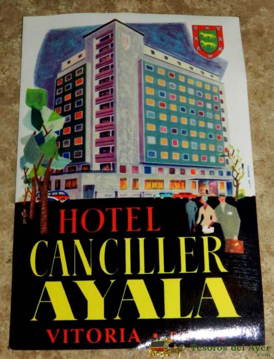 ANTIGUA ETIQUETA DE MALETA - ANTIQUE LUGGAGE BAGAGE LABEL - ANCIEN ETIQUETTE LA VALISE - HOTEL CANCILLER AYALA, VITORIA - TAL COMO SE VE EN LA FOTO