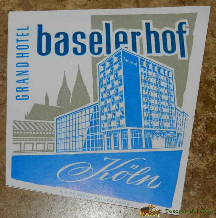 ANTIGUA ETIQUETA DE MALETA - ANTIQUE LUGGAGE BAGAGE LABEL - ANCIEN ETIQUETTE LA VALISE - GRAN HOTEL BASELERHOF, KOLN - TAL COMO SE VE EN LA FOTO
