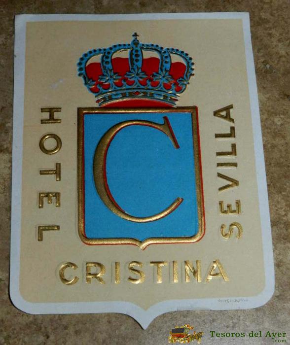 ANTIGUA ETIQUETA DE MALETA - ANTIQUE LUGGAGE BAGAGE LABEL - ANCIEN ETIQUETTE LA VALISE - HOTEL CRISTINA SEVILLA - TAL COMO SE VE EN LA FOTO.