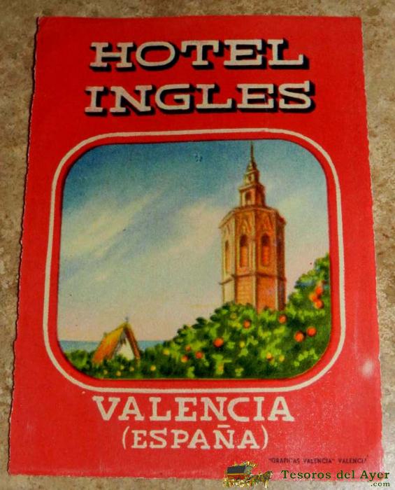 ANTIGUA ETIQUETA DE MALETA - ANTIQUE LUGGAGE BAGAGE LABEL - ANCIEN ETIQUETTE LA VALISE - HOTEL INGLES, VALENCIA - TAL COMO SE VE EN LA FOTO.