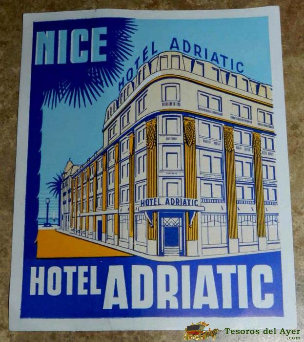 ANTIGUA ETIQUETA DE MALETA - ANTIQUE LUGGAGE BAGAGE LABEL - ANCIEN ETIQUETTE LA VALISE - HOTEL ADRIATIC, NICE - TAL COMO SE VE EN LA FOTO.