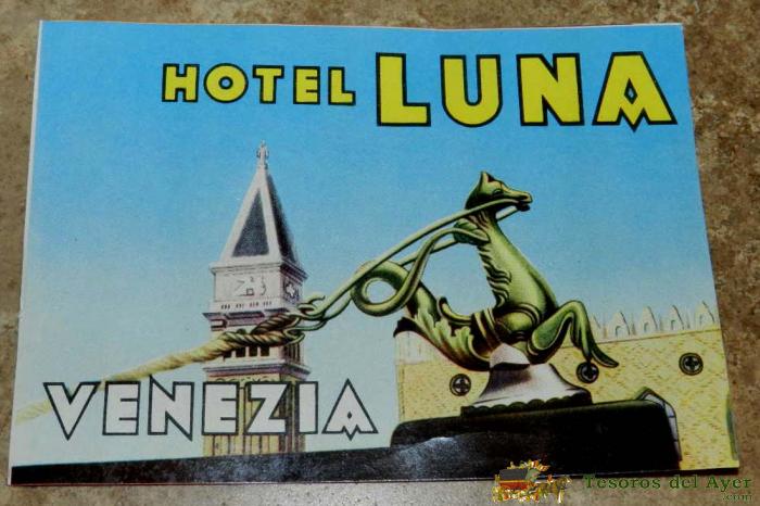 ANTIGUA ETIQUETA DE MALETA - ANTIQUE LUGGAGE BAGAGE LABEL - ANCIEN ETIQUETTE LA VALISE - HOTEL LUNA, VENEZIA - TAL COMO SE VE EN LA FOTO.