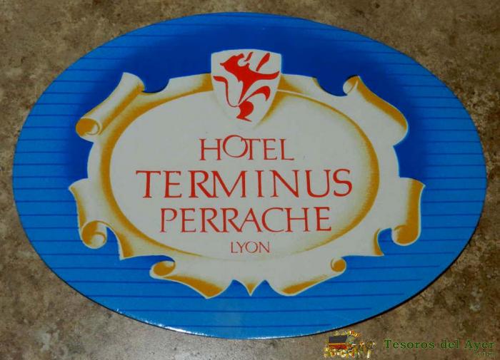 ANTIGUA ETIQUETA DE MALETA - ANTIQUE LUGGAGE BAGAGE LABEL - ANCIEN ETIQUETTE LA VALISE - HOTEL TERMINUS PERRACHE, LYON - TAL COMO SE VE EN LA FOTO.