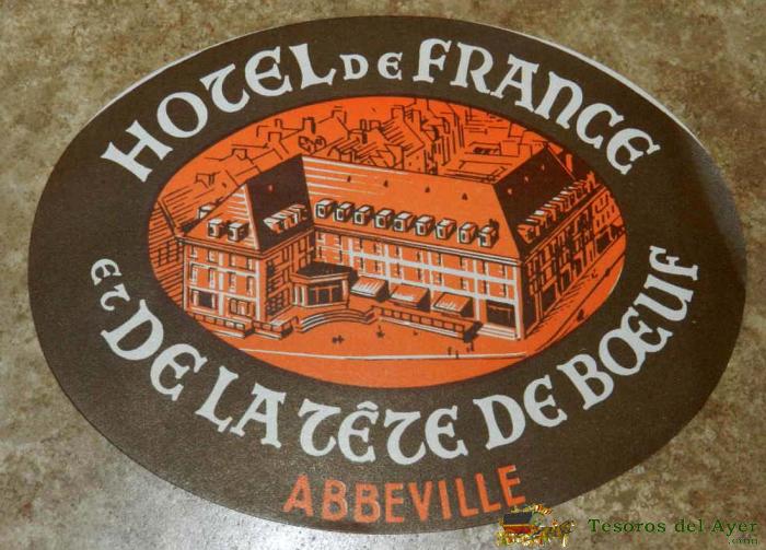 ANTIGUA ETIQUETA DE MALETA - ANTIQUE LUGGAGE BAGAGE LABEL - ANCIEN ETIQUETTE LA VALISE - HOTEL DE FRANCE, ABBEVILLE - TAL COMO SE VE EN LA FOTO.