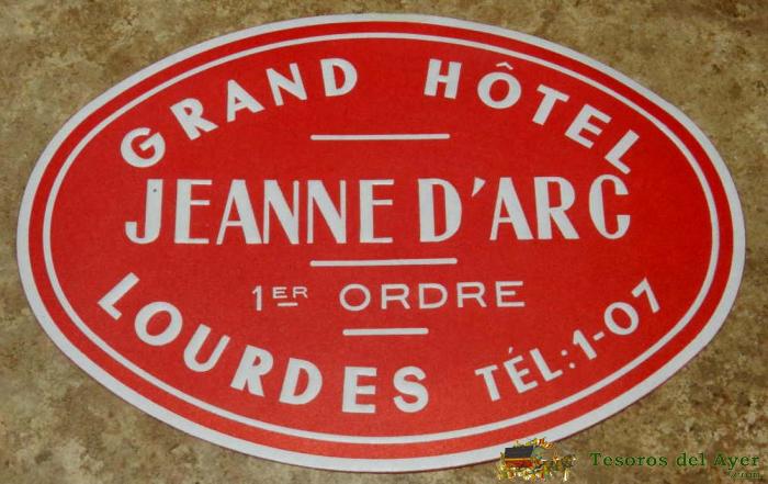 ANTIGUA ETIQUETA DE MALETA - ANTIQUE LUGGAGE BAGAGE LABEL - ANCIEN ETIQUETTE LA VALISE - GRAND HOTEL JEANNE DARC, LOURDES - TAL COMO SE VE EN LA FOTO.