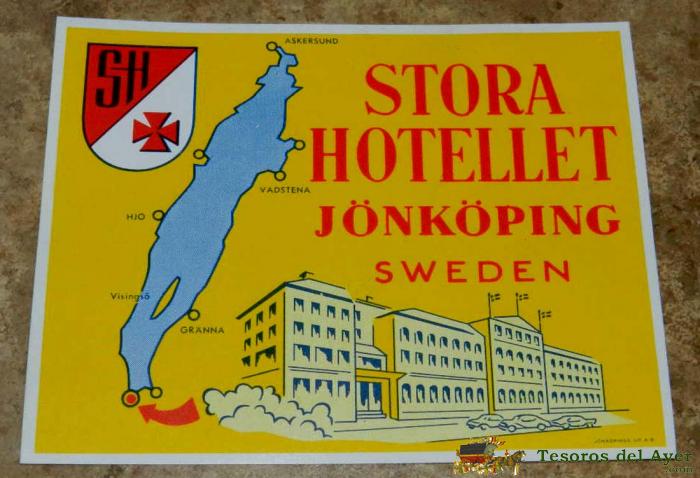 ANTIGUA ETIQUETA DE MALETA - ANTIQUE LUGGAGE BAGAGE LABEL - ANCIEN ETIQUETTE LA VALISE - STORA HOTELLET, JONKOPING, SWEDEN - TAL COMO SE VE EN LA FOTO.