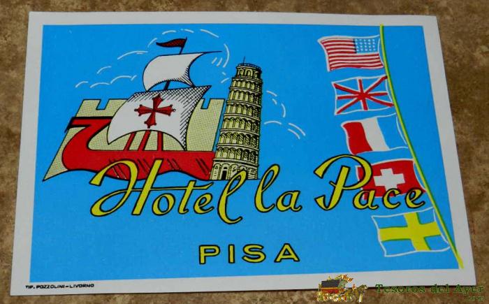 ANTIGUA ETIQUETA DE MALETA - ANTIQUE LUGGAGE BAGAGE LABEL - ANCIEN ETIQUETTE LA VALISE - HOTEL LA PACE, PISA- TAL COMO SE VE EN LA FOTO.