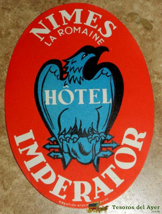 ANTIGUA ETIQUETA DE MALETA - ANTIQUE LUGGAGE BAGAGE LABEL - ANCIEN ETIQUETTE LA VALISE - HOTEL IMPERATOR, NIMES - TAL COMO SE VE EN LA FOTO.
