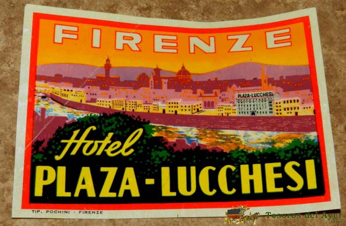 ANTIGUA ETIQUETA DE MALETA - ANTIQUE LUGGAGE BAGAGE LABEL - ANCIEN ETIQUETTE LA VALISE - HOTEL PLAZA LUCCHESI, FIRENZE- TAL COMO SE VE EN LA FOTO.