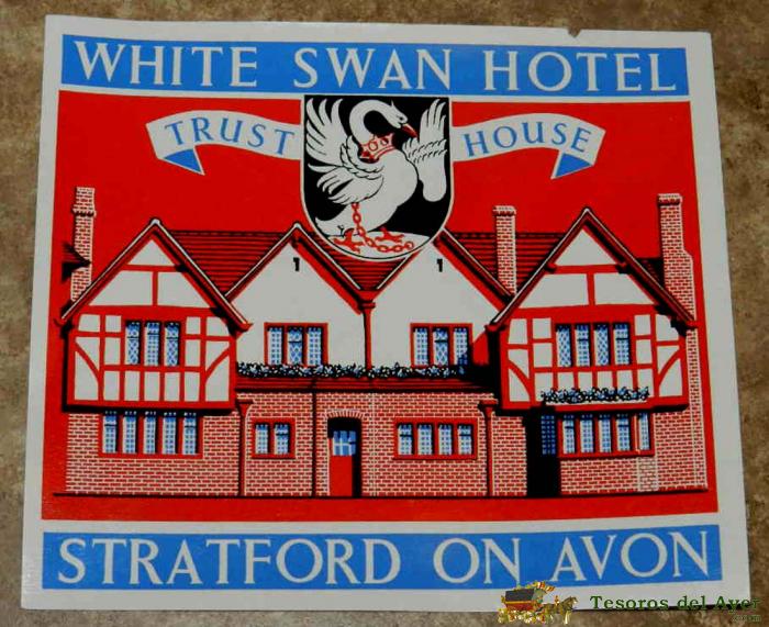ANTIGUA ETIQUETA DE MALETA - ANTIQUE LUGGAGE BAGAGE LABEL - ANCIEN ETIQUETTE LA VALISE - HOTEL WHITE SWAN, STRATORD ON AVON - TAL COMO SE VE EN LA FOTO.
