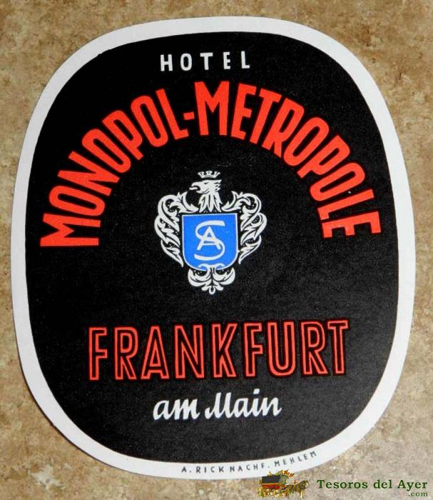 ANTIGUA ETIQUETA DE MALETA - ANTIQUE LUGGAGE BAGAGE LABEL - ANCIEN ETIQUETTE LA VALISE - HOTEL MONOPOL METROPOLE, TAL COMO SE VE EN LA FOTO.