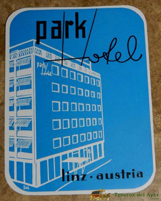 ANTIGUA ETIQUETA DE MALETA - ANTIQUE LUGGAGE BAGAGE LABEL - ANCIEN ETIQUETTE LA VALISE - HOTEL PARK, LINZ, AUSTRIA, TAL COMO SE VE EN LA FOTO.