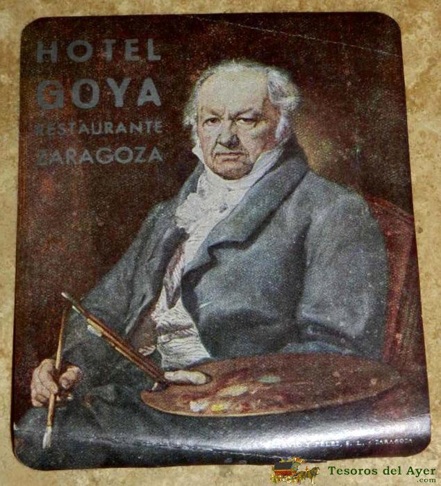 ANTIGUA ETIQUETA PARA MALETA CON PUBLICIDAD DEL HOTEL GOYA - ZARAGOZA - TAMAÑO POSTAL APROXIMADAMENTE.