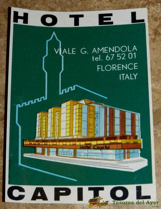 ANTIGUA ETIQUETA DE MALETA - ANTIQUE LUGGAGE BAGAGE LABEL - ANCIEN ETIQUETTE LA VALISE - HOTEL CAPITOL, FLORENCIA, TAL COMO SE VE EN LA FOTO.