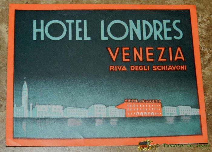 ANTIGUA ETIQUETA DE MALETA - ANTIQUE LUGGAGE BAGAGE LABEL - ANCIEN ETIQUETTE LA VALISE - HOTEL LONDRES, VENECIA, TAL COMO SE VE EN LA FOTO.