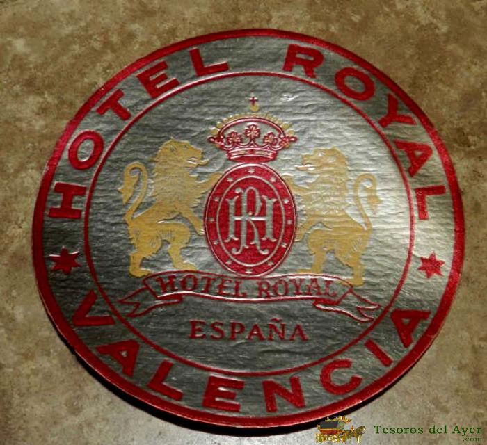 ANTIGUA ETIQUETA DE MALETA - ANTIQUE LUGGAGE BAGAGE LABEL - ANCIEN ETIQUETTE LA VALISE - HOTEL ROYAL, VALENCIA, TAL COMO SE VE EN LA FOTO.