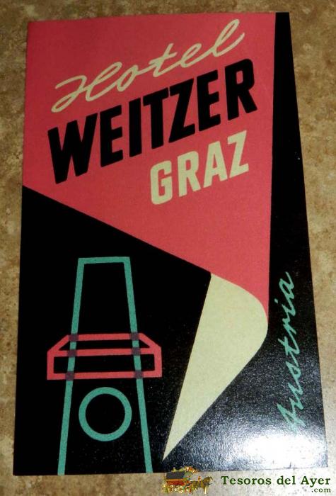 ANTIGUA ETIQUETA DE MALETA - ANTIQUE LUGGAGE BAGAGE LABEL - ANCIEN ETIQUETTE LA VALISE - HOTAL WEITZER GRAZ, AUSTRIA, TAL COMO SE VE EN LA FOTO.
