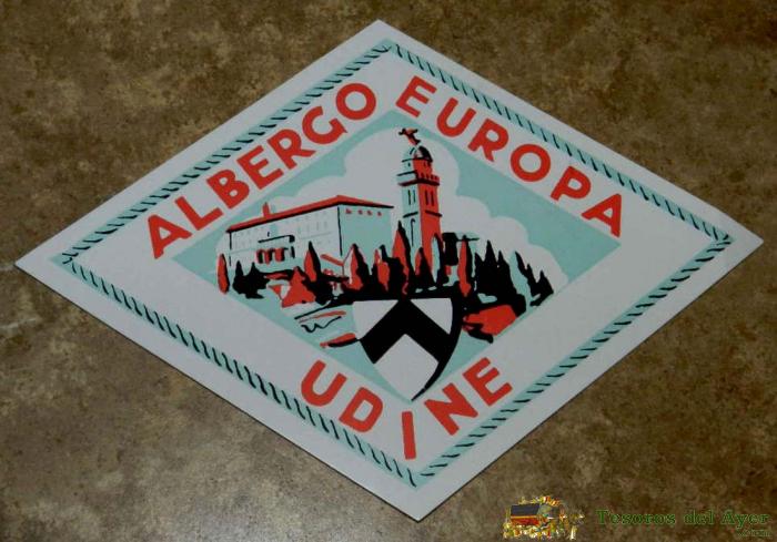 ANTIGUA ETIQUETA DE MALETA - ANTIQUE LUGGAGE BAGAGE LABEL - ANCIEN ETIQUETTE LA VALISE - HOTEL ALBERGO EUROPA, UDINE, TAL COMO SE VE EN LA FOTO.