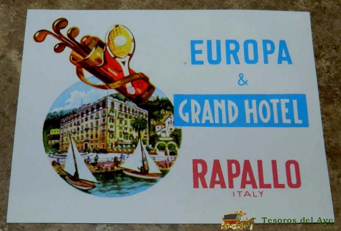 ANTIGUA ETIQUETA DE MALETA - ANTIQUE LUGGAGE BAGAGE LABEL - ANCIEN ETIQUETTE LA VALISE - HOTEL EUROPA Y GRAND HOTEL RAPALLO, TAL COMO SE VE EN LA FOTO.