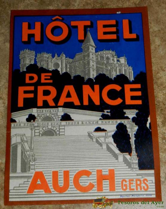 ANTIGUA ETIQUETA DE MALETA - ANTIQUE LUGGAGE BAGAGE LABEL - ANCIEN ETIQUETTE LA VALISE - HOTEL DE FRANCE, AUCHGERS, TAL COMO SE VE EN LA FOTO.
