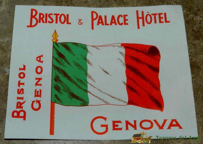ANTIGUA ETIQUETA DE MALETA - ANTIQUE LUGGAGE BAGAGE LABEL - ANCIEN ETIQUETTE LA VALISE - HOTEL BRISTOL PALACE, GENOVE, TAL COMO SE VE EN LA FOTO.