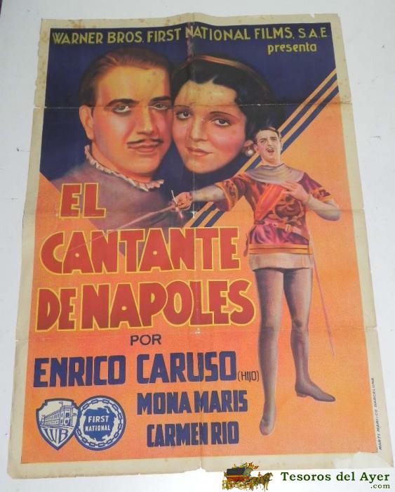ANTIGUO CARTEL DE LA PELICULA EL CANTANTE DE NAPOLES - POR ENRICO CARUSO (HIJO), MONA MARIS, CARMEN RIO - OPERA - WARNER BROS - MIDE 104 X 70 CMS. ALGUNA RESTAURACION POR DETRAS TAL COMO SE PUEDE VER EN LAS FOTOS PUESTAS.