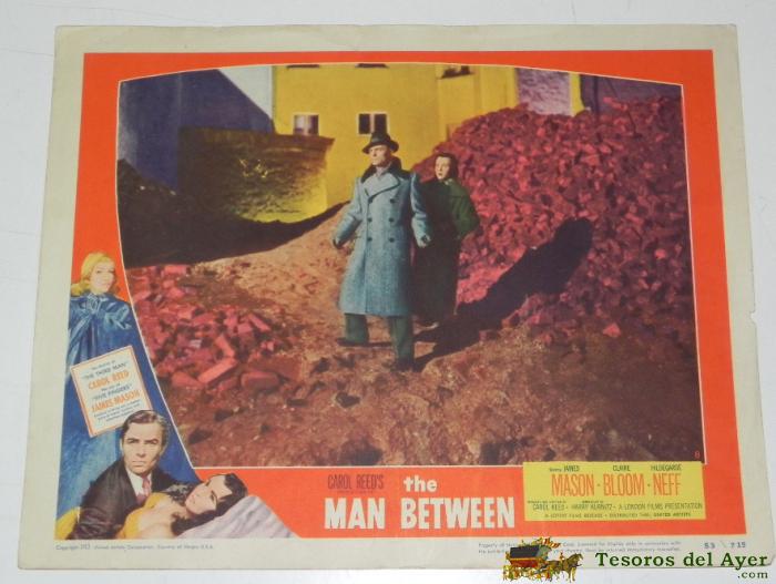ANTIGUO CARTEL, CARTELERA DE CINE DE LA PELICULA THE MAN BETWEEN, CARTON, JAMES MASON, CLAIRE BLOOM, AÑO 1953, MIDE 35 X 28 CMS, PEQUEñOS DESPERFECTOS.