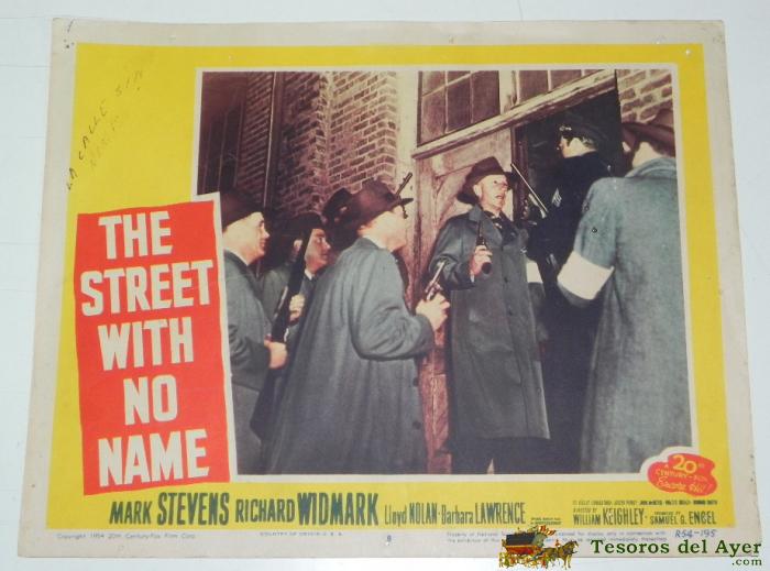 ANTIGUO CARTEL, CARTELERA DE CINE DE LA THE STREET WITH NO NAME, CARTON, AÑO 1954, MARK STEVENS, RICHARD WIDMARK, MIDE 35 X 28 CMS, PEQUEñOS DESPERFECTOS.
