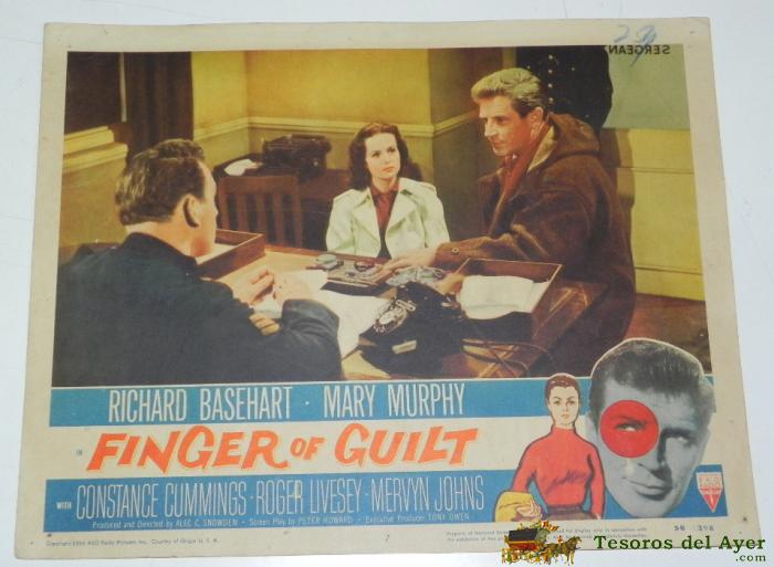 ANTIGUO CARTEL, CARTELERA DE CINE DE LA PELICULA FINGER OF GUILT, RICHARD BASEHART, MARY MURPHY, AÑO 1956, MIDE 35 X 28 CMS, EN CARTON, CON ALGUN LIGERO DESPERFECTO.