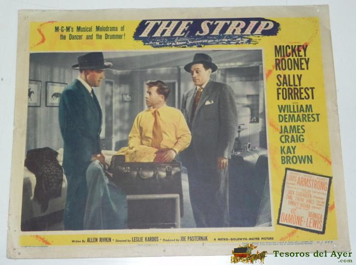 ANTIGUO CARTEL, CARTELERA DE CINE DE LA PELICULA THE STRIP, MICKEY ROONEY, SALLY FORREST, AÑO 1951, MIDE 35 X 28 CMS, EN CARTON, CON ALGUN LIGERO DESPERFECTO.