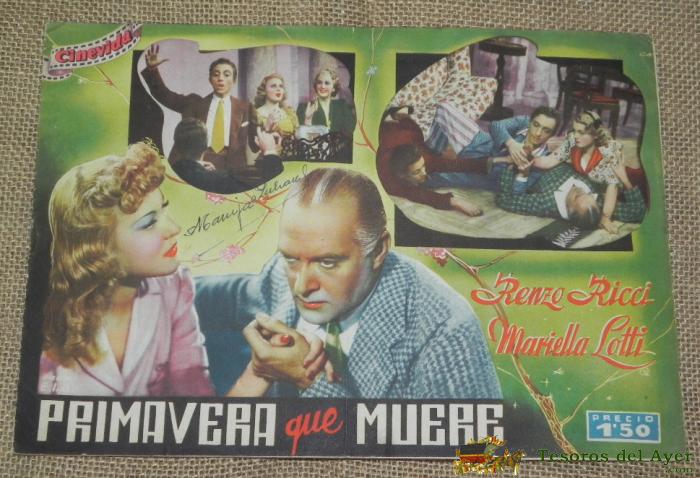 GUIA DE LA PELICULA PRIMAVERA QUE MUERE, EDITORIAL: HISPANO AMERICANA DE EDICIONES, MEDIDA: 29 X 20 CM. TIENE 12 PáGINAS. EN LA PORTADA DE RENZO RICCI MARIELLA LOTTI, CONTRAPORTADA DE GARY COOPER. FIRMA DEL ANTERIOR PROPIETARIO EN LA PORTADA.