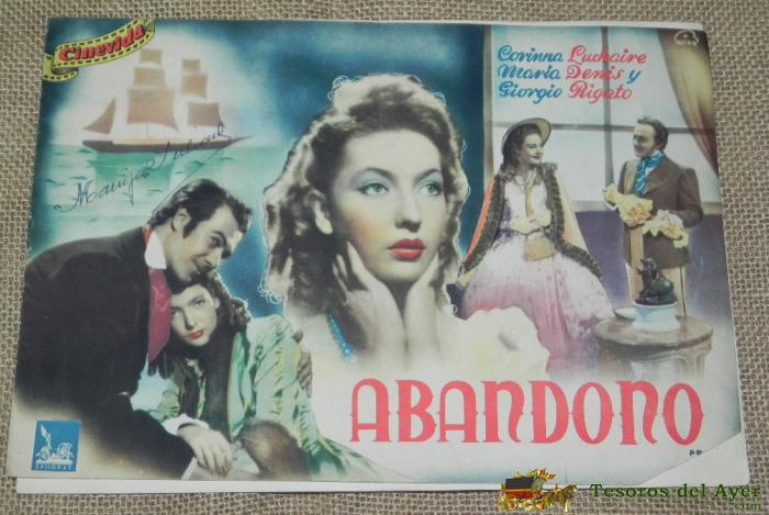GUIA DE LA PELICULA ABANDONO, CINEVIDA, CON CORINNA LUCHAIRE, MARIA DENIS Y GIORGIO RIGOTO. DIRECTOR: MARIO MATTOLI. ORIGINAL. APAISADO. TAMAñO: 29 X 20 CMS. EN CASTELLANO. EN BLANCO Y NEGRO. 10 PáGINAS. SU PRECIO ERA 1,50 PESETAS. EN LA CONTRAPORTADA HAY