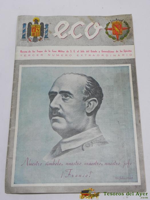 ANTIGUA REVISTA EXTRAORDINARIA ECO, 3. NUM., JULIO DE 1948, DE LAS TROPAS DE LA CASA MILITAR DE S.E. EL JEFE DEL ESTADO Y GENRALISIMO DE LOS EJERCITOS, TIENE 32 PAG. MIDE 30 X 21 CMS.