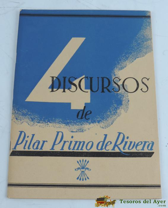 4 DISCURSOS DE PILAR PRIMO DE RIVERA - FALANGE ESPAÑOLA, 1939, EDITORIAL NACIONAL, TIENE 36 PAG. MIDE 24,5 X 17,5 CMS.
