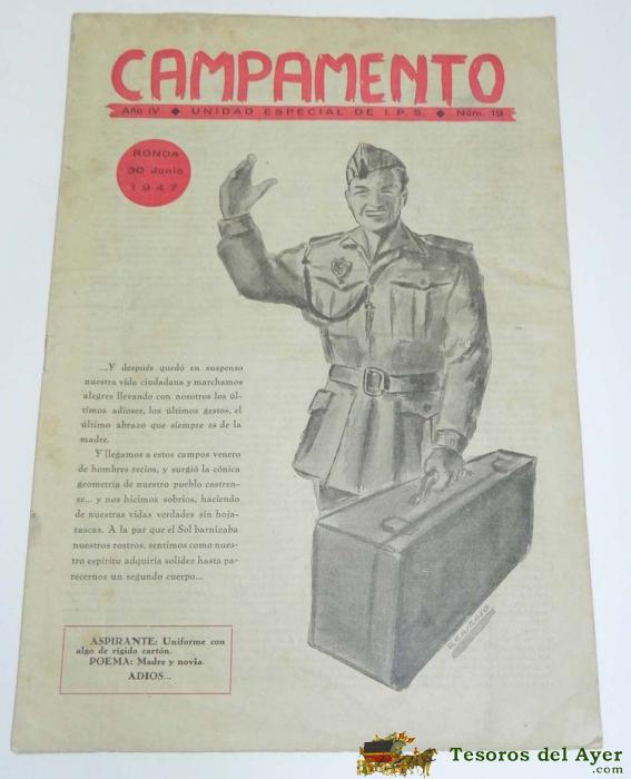 REVISTA MILITAR CAMPAMENTO, Nº 19, UNIDAD ESPECIAL IPS, 2ª REGION MILITAR, RONDA, 30 DE JUNIO 1947. MEDIDAS: 33 X 24 CM. 8 PAGINAS.
